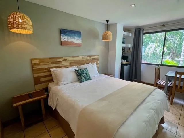 Our hotel showcases the best of Costa Rica. Surrounded by lush greenery, we're just a two-minute walk from the beach, where you can hear the waves from your room. The warm waves are ideal for surfers of all levels, with peaks up and down the beach and more often than not we surf alone.